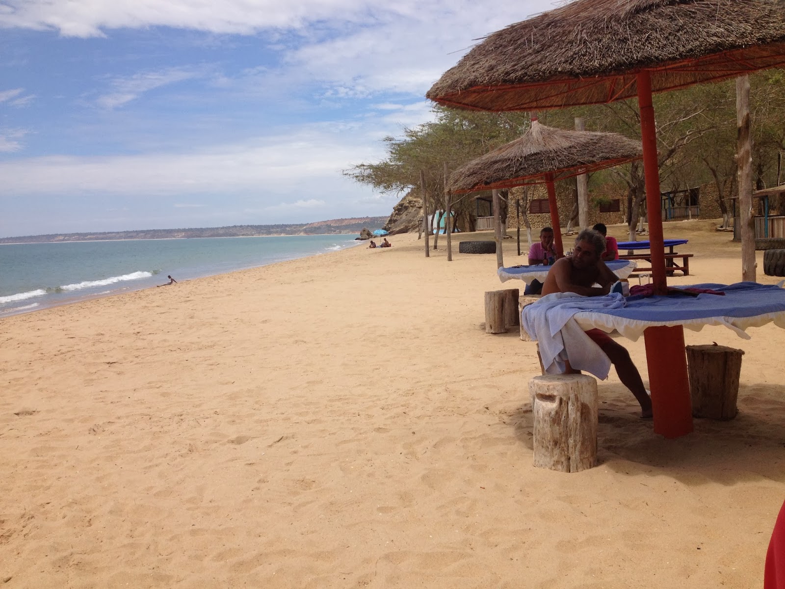 Cabo Ledo, impressionante a paz daquele sítio, a cor do mar, as lagostas deliciosas que se come por lá, vale mesmo a pena, percebemos que há la casinhas para ficar no fim de semana, 15 000 Kz 2 pessoas por noite com direito a Pequeno Almoço, cada pessoa extra 3 500 vale a pena. Até chegar lá passamos na aldeia, daquelas típicas onde só se vê miséria, é incrível o contraste nesta terra, onde o luxo e a miséria está lado a lado. Levamos água e bolachas para dar a algumas crianças, não sabemos se fizemos bem porque percebemos que ficaram a discutir para ver quem ficava com as coisas, é dificil de ver e saber que não se pode fazer nada.